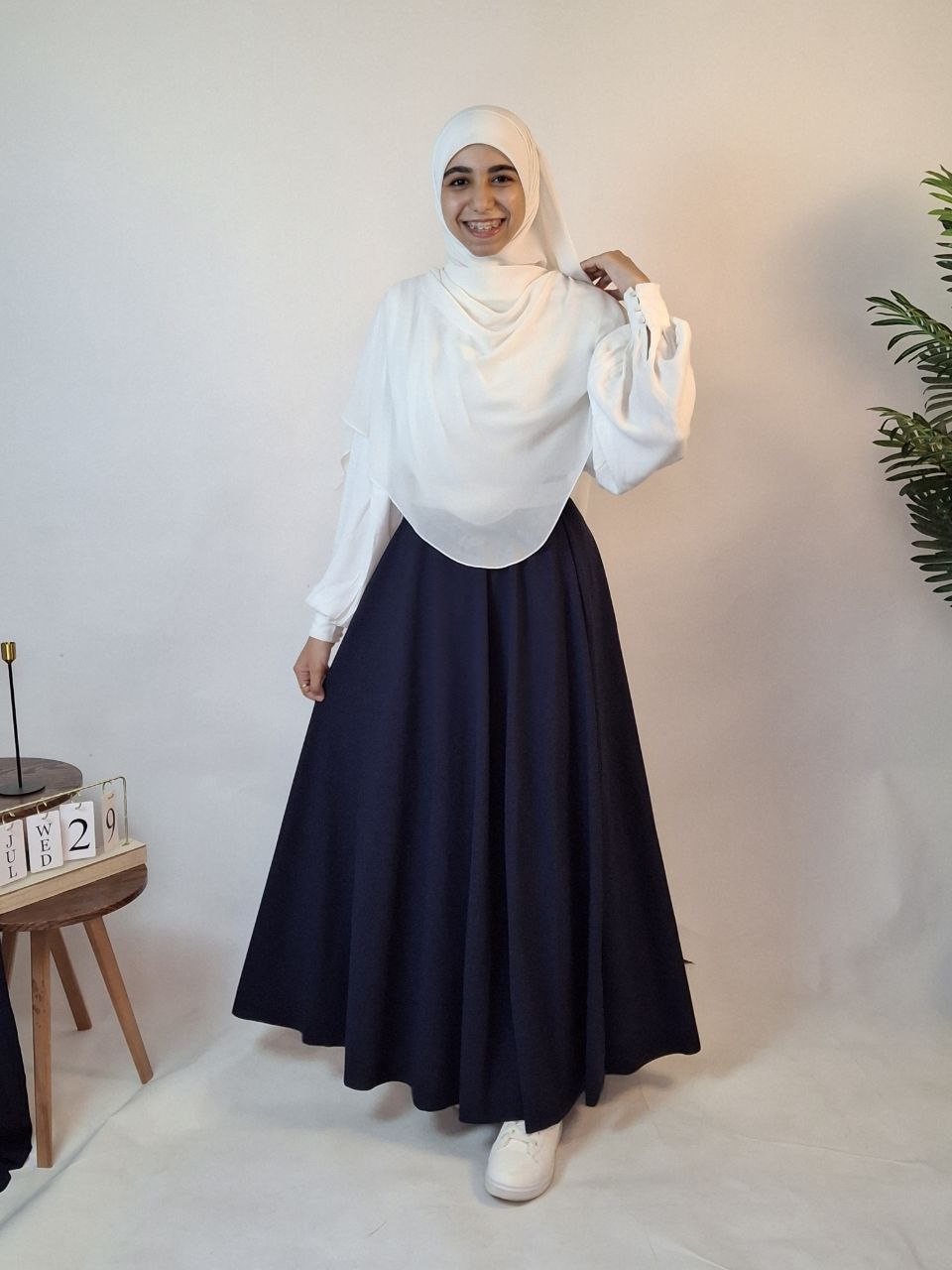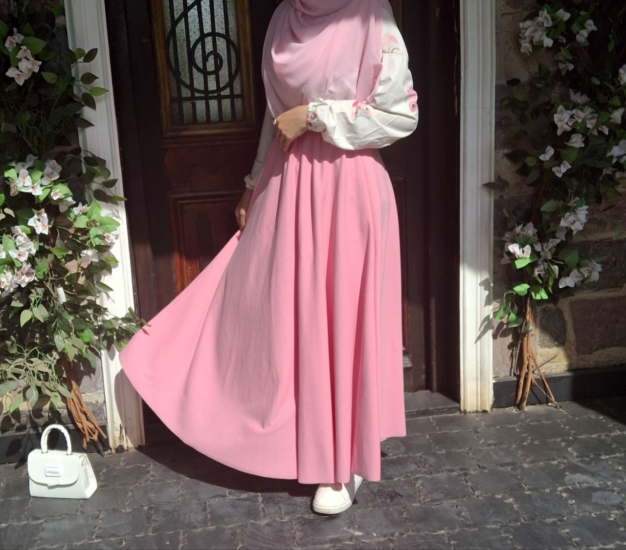 الطول موحّد لكل المقاسات ( 105 سم)، يلبس لحد طول 175 سم الوسع جيبة : 3 متر